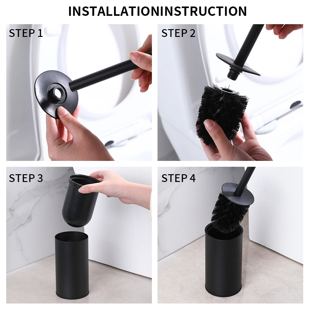 This stylish and functional stainless steel toilet brush holder is designed to keep your bathroom organized and clean. With its sleek black finish, it complements modern and traditional bathroom decor alike.